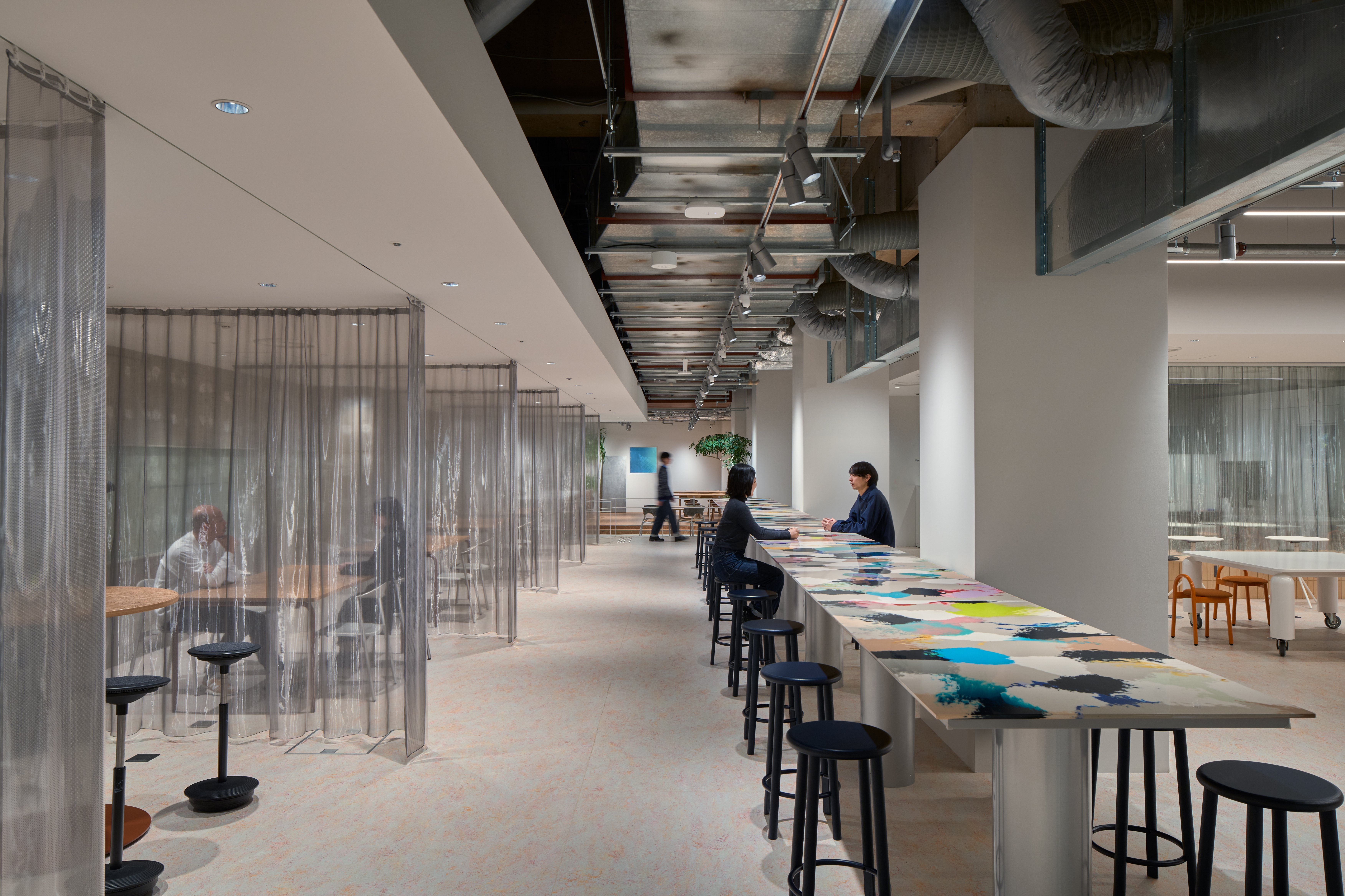 「ともに、つくる」をコンセプトに、社内外のチームやユーザーに向けた滞在型共創スペース「CREATION PLACE “BOXX”」と、1人ではなく、誰かとの共創を促すライブラリー「HIVERARY」を新設。リアルな場だからこそできる働き方を模索した。