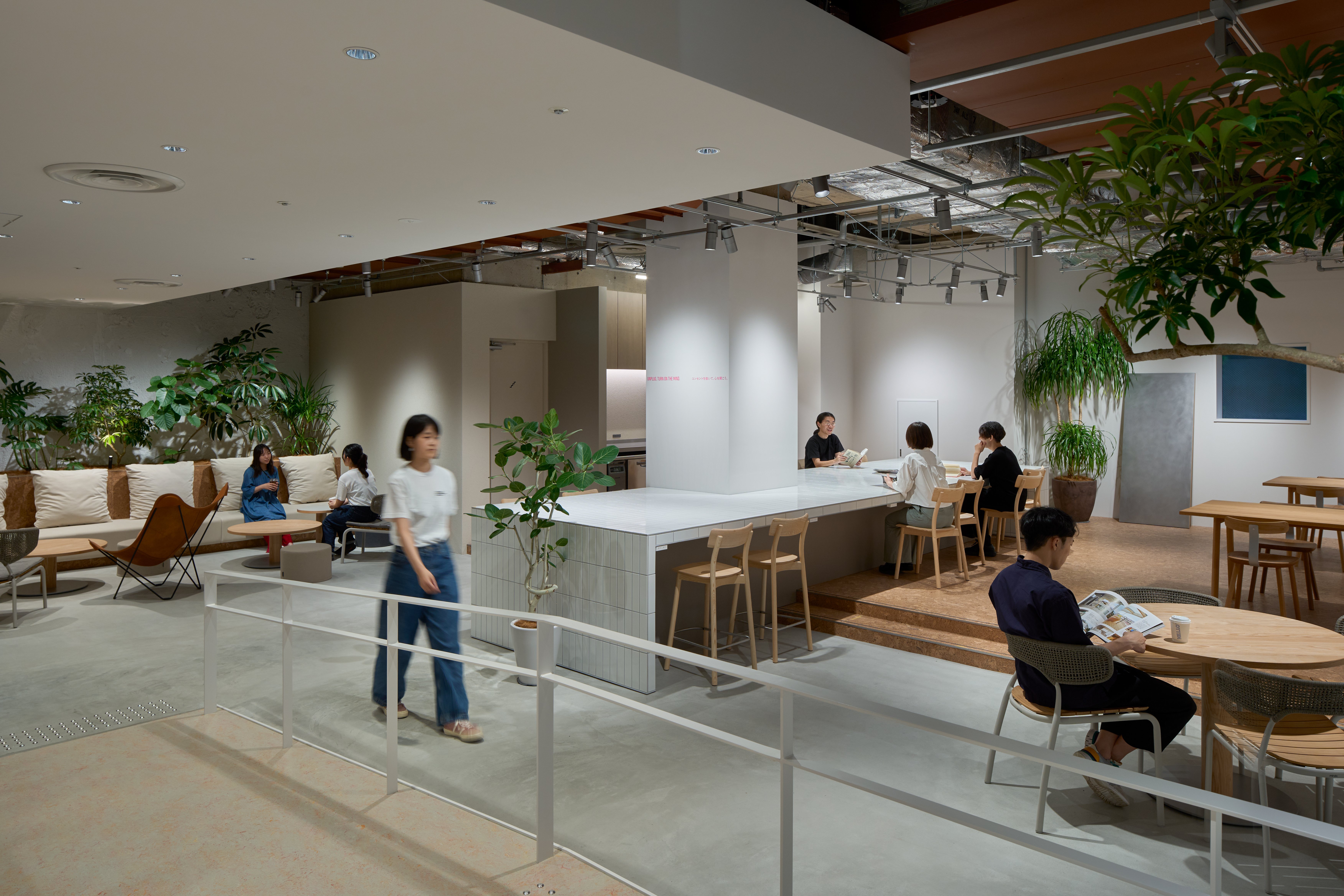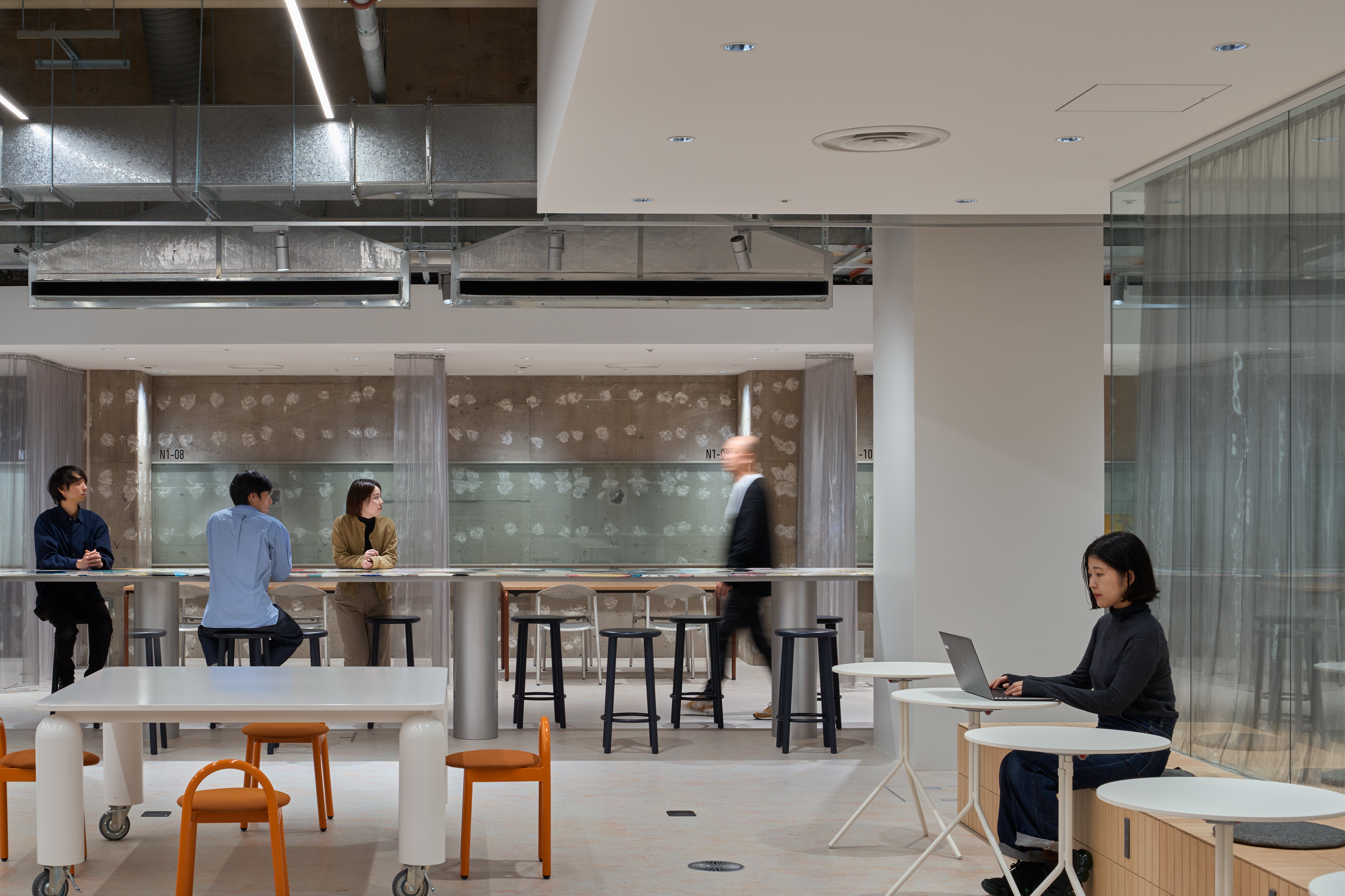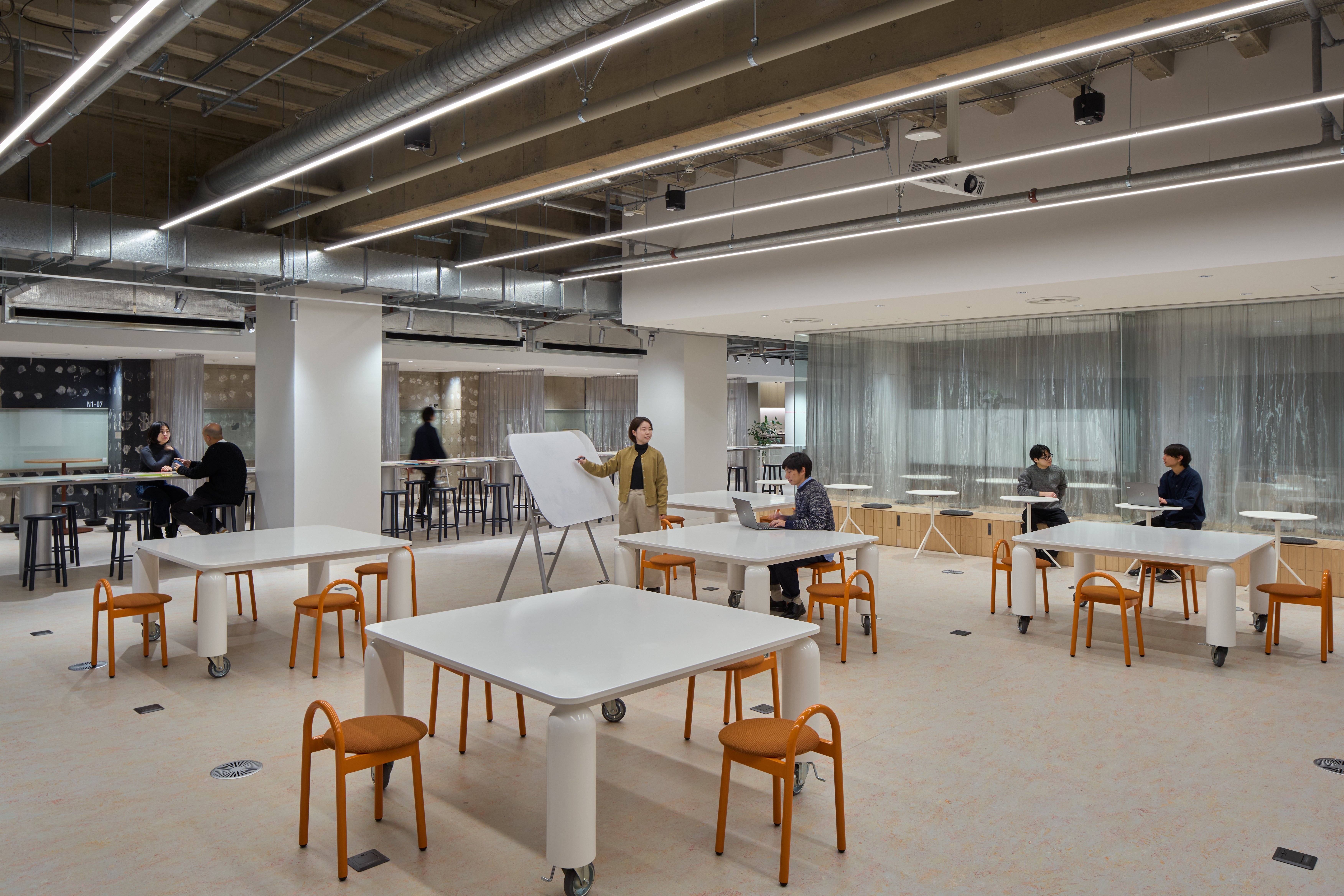 「CREATION PLACE “BOXX”」は、コクヨらしいクリエイティビティを育み、社会と「ともに、つくる」ための拠点。地域住民やワーカーを巻き込んだ新商品のテストマーケティングやサステナブル活動を行うポップアップスペース、社会課題解決に向けて社内外のパートナーとワークショップやブレストなどを行う滞在型の共創スペースとしての活用を目指した。一方「HIVERARY」は、社内の仲間との関わりからインスピレーションを得て、アウトプットを「ともに、つくる」ための拠点。企業と個人が相互に成長することを応援する場になることを目指した。