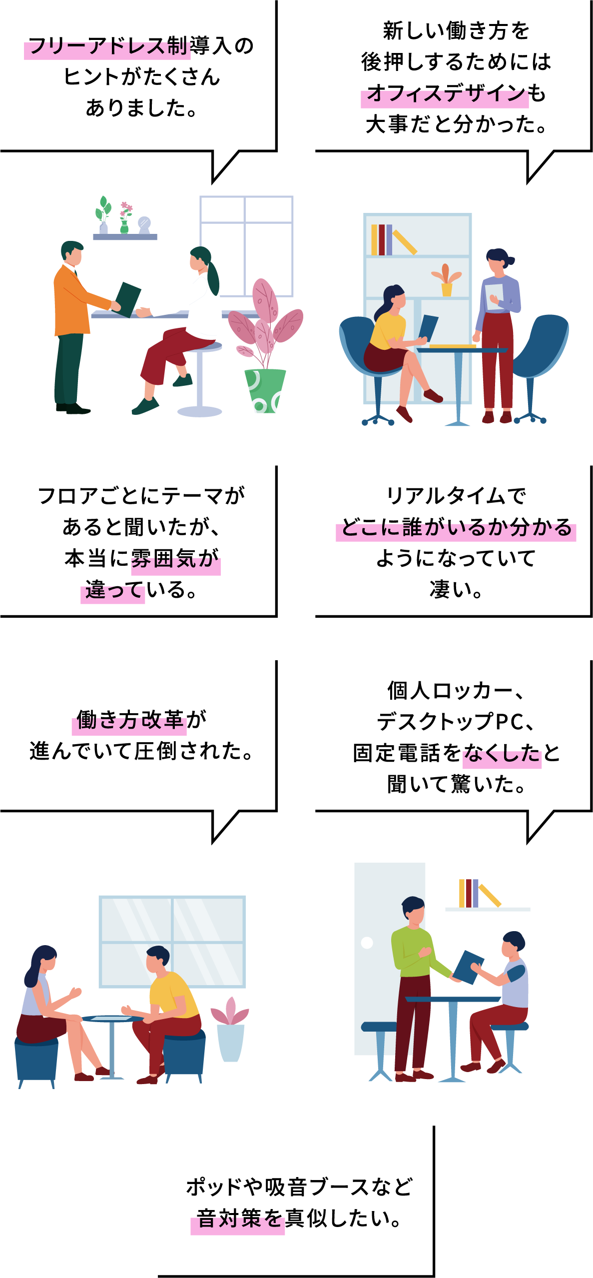 日々生まれる課題に合わせて、オフィス空間や運用の仕組みをアップデートしているので、お客様それぞれの課題解決のための