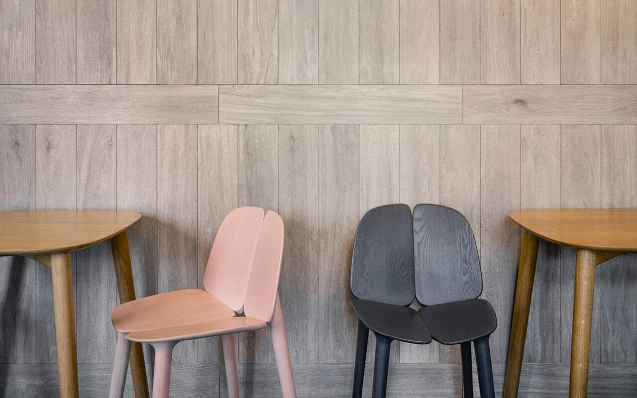 丸みのある官能的なフォルムを用いることで、触れてみたくなり、その先に木の質感が感じられるデザイン的な仕掛けを加えたシリーズ。背もたれとシートの組み合わせに最先端のデジタル制御機械を用いて、彫刻のような造形性をもたせつつ、工業製品としての再現性、強度を実現しました。