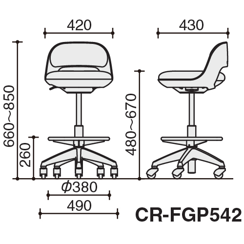 H720~H900のテーブルで使用できる座面高さです。 (SH480~670)
