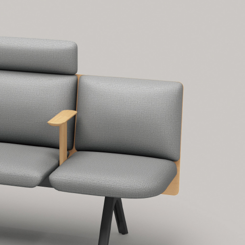 隣席との距離を保ち、ゆったりと過ごせる雰囲気を演出。広い面で身体を支えられ、立ち座りも快適。後方列の配置におすすめ。