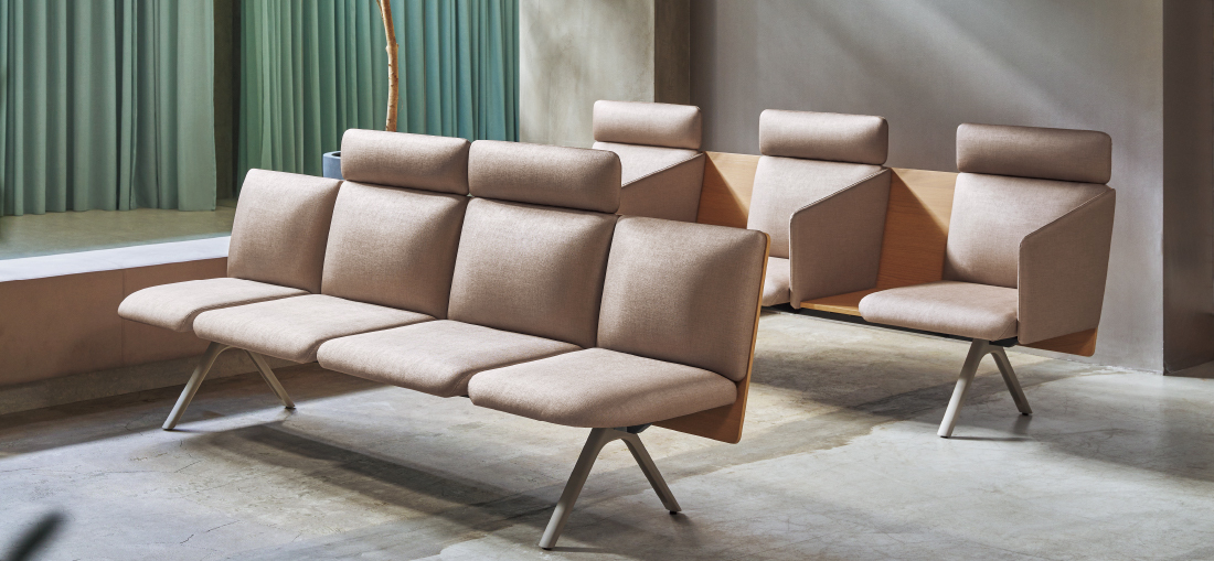 ベンチ、スタンダード、ハイバックだけでなく、インクルーシブデザインの視点を盛り込んだT字肘や隣と仕切れるパネル肘、ゆったり待てるスワン肘と様々なバリエーションがあります。これらを同じ空間にレイアウトすることで来院者が自分に合った席を見つけることができます。
