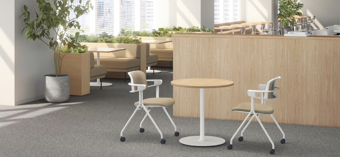 ゆったりとしたサイズ感と自然な動きのリクライニング機能で、会議室や研修室など座る人を限定しないイスとして、ストレスフリーな座り心地を実現しました。