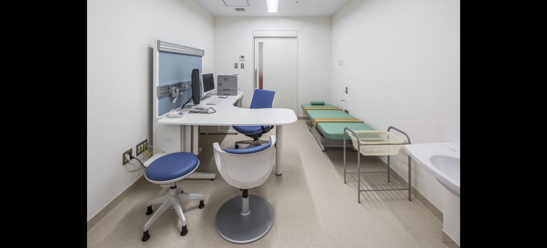 聴診・視診・触診等がより行いやすいように、医師と患者さんの距離が近い形状です。