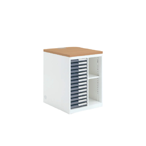 再度収納のトレー・オープンコンビをセットでお使いいただくと、無理のない姿勢で書類の出し入れが可能です。