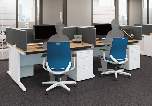 奥行き600mmタイプはオフィススペースにゆとりが生まれるだけでなく、対向者とのコミュニケーションもとりやすくなります。