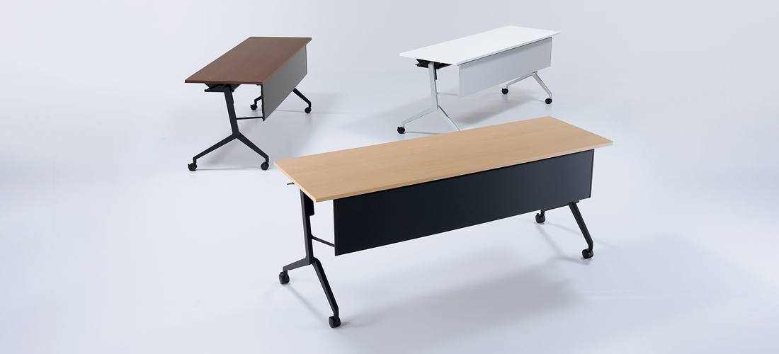 フラップ回転軸と天板重心を揃える新構造により従来に比べて軽い力でフラップ操作が可能。また、脚の角度が垂直に近いため、安定した移動が可能です。