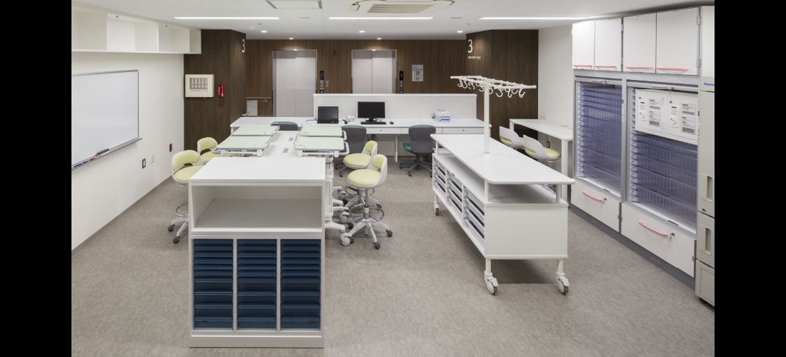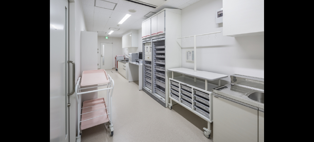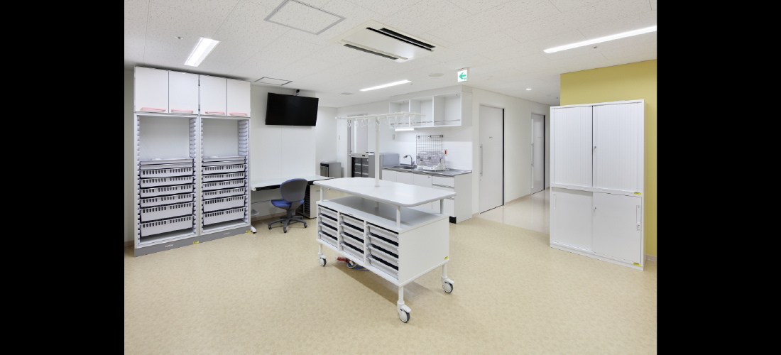 また、床から最下段トレーまでは30cmの空間を設け、不潔エリアに物を置けない設計にしています。