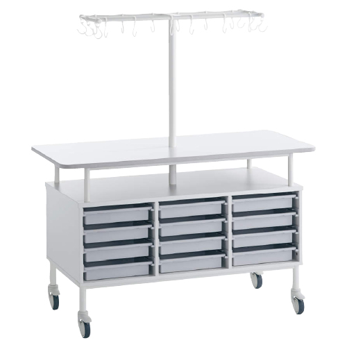 1本支柱の輸液ハンガーで、短辺側でも作業ができ、混雑時も作業スペースを有効に使えます。