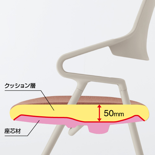 安定した姿勢の保持と、包み込み感を両立しました(クッション最厚部:50mm)。