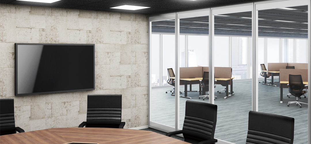 パーティションと並んでも統一感のある空間を実現するために、アキュラートneoガラスパネルを踏襲したデザインを採用。