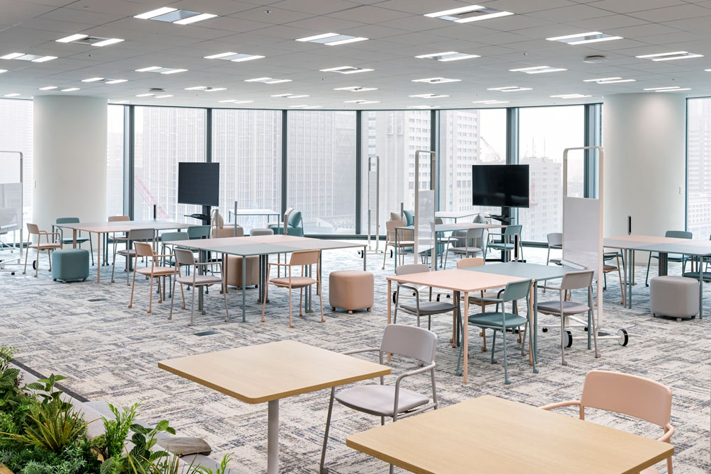 The harmonious color scheme combined with the functionality of "stability when moved" and "comfortable seating" became the decisive factor in selecting the furniture, strongly supporting the new work style.