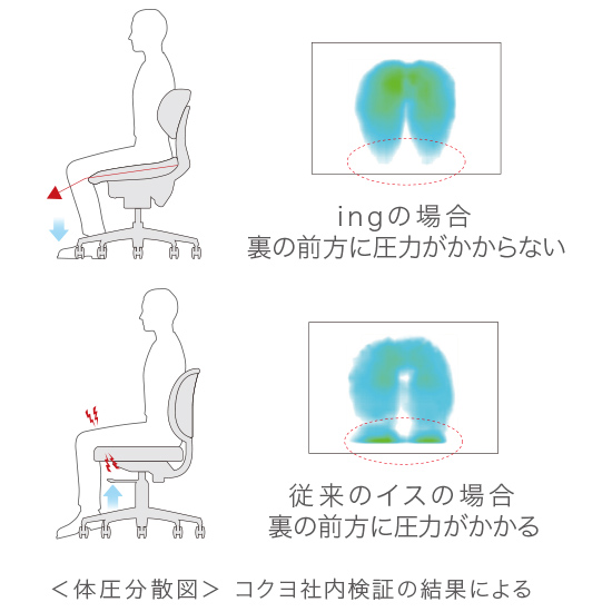 そんなときでもingのグライディング・メカは、座る人の動きに対応。