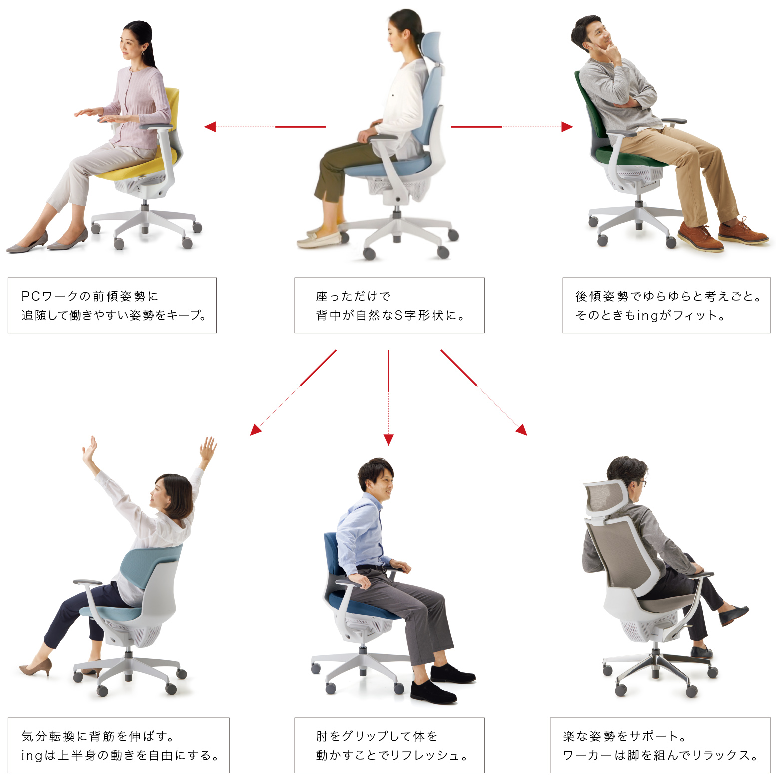 じっとしていても、体を動かしていても、ingが働くための姿勢をサポートします。