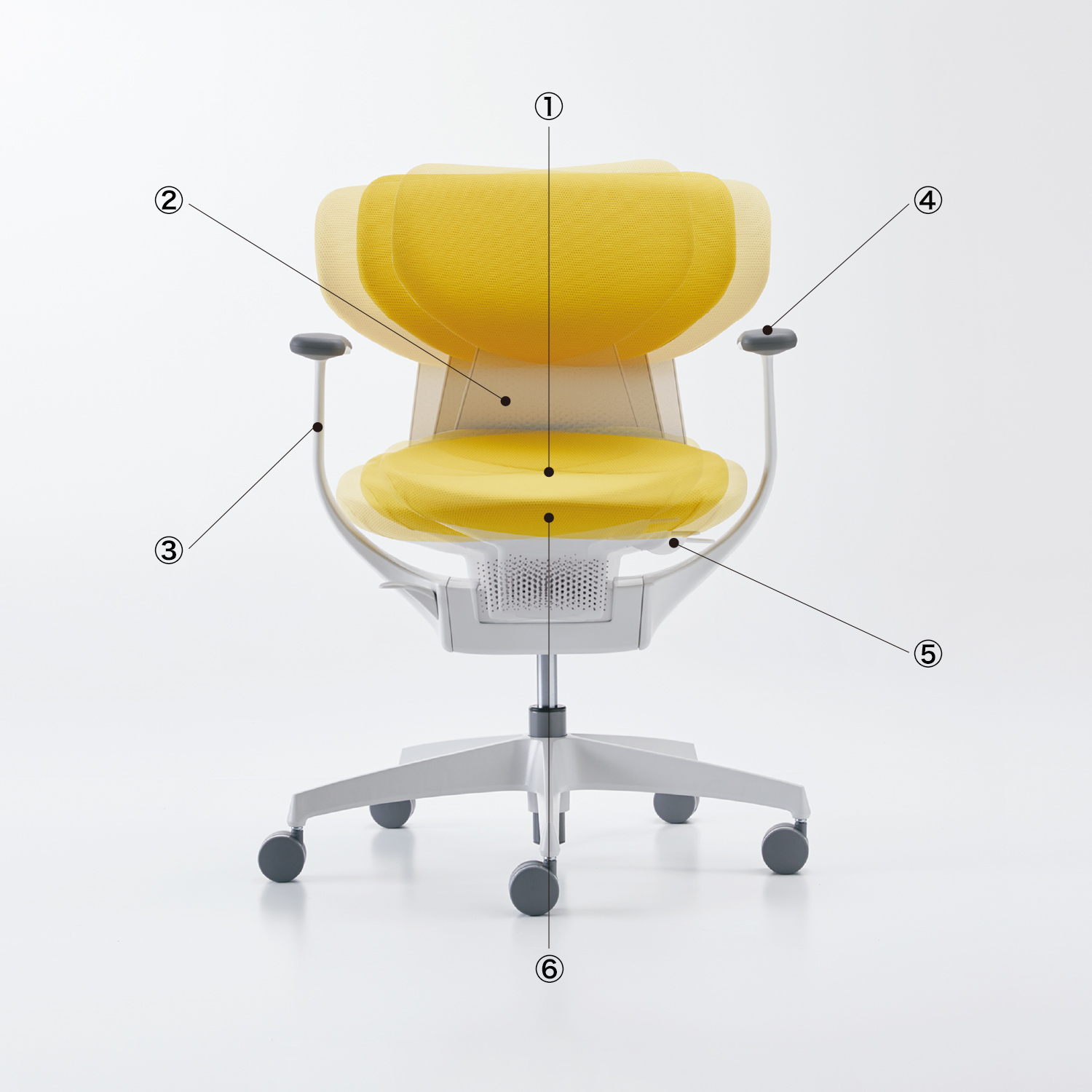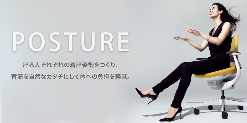 360°グライディングにより、その人に合った背骨のS字カーブがつくられるため、背もたれにランバーサポートは不要。背骨がより解放され、体が動かしやすくなります。