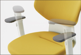 PC ワーク時の腕をサポートするため、上下方向と内側回転の可動機能を拡張した可動肘があります