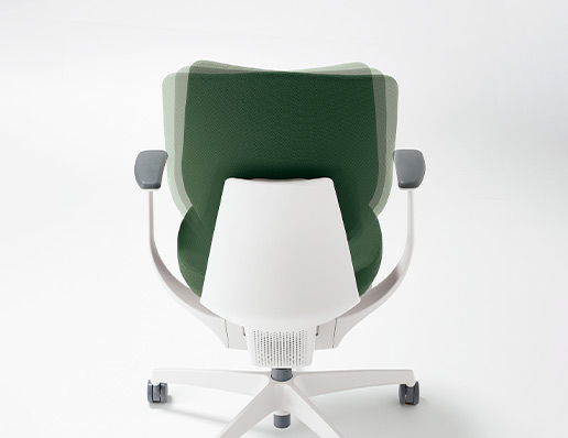 ゆったりとしたクッションの背もたれが体をしっかりと受け止め、自然と揺れることができます。