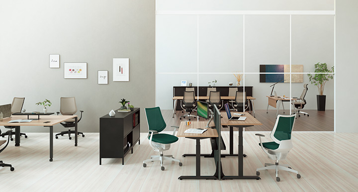 空間への圧迫感がなく、オフィスに広がりと開放感を演出します。