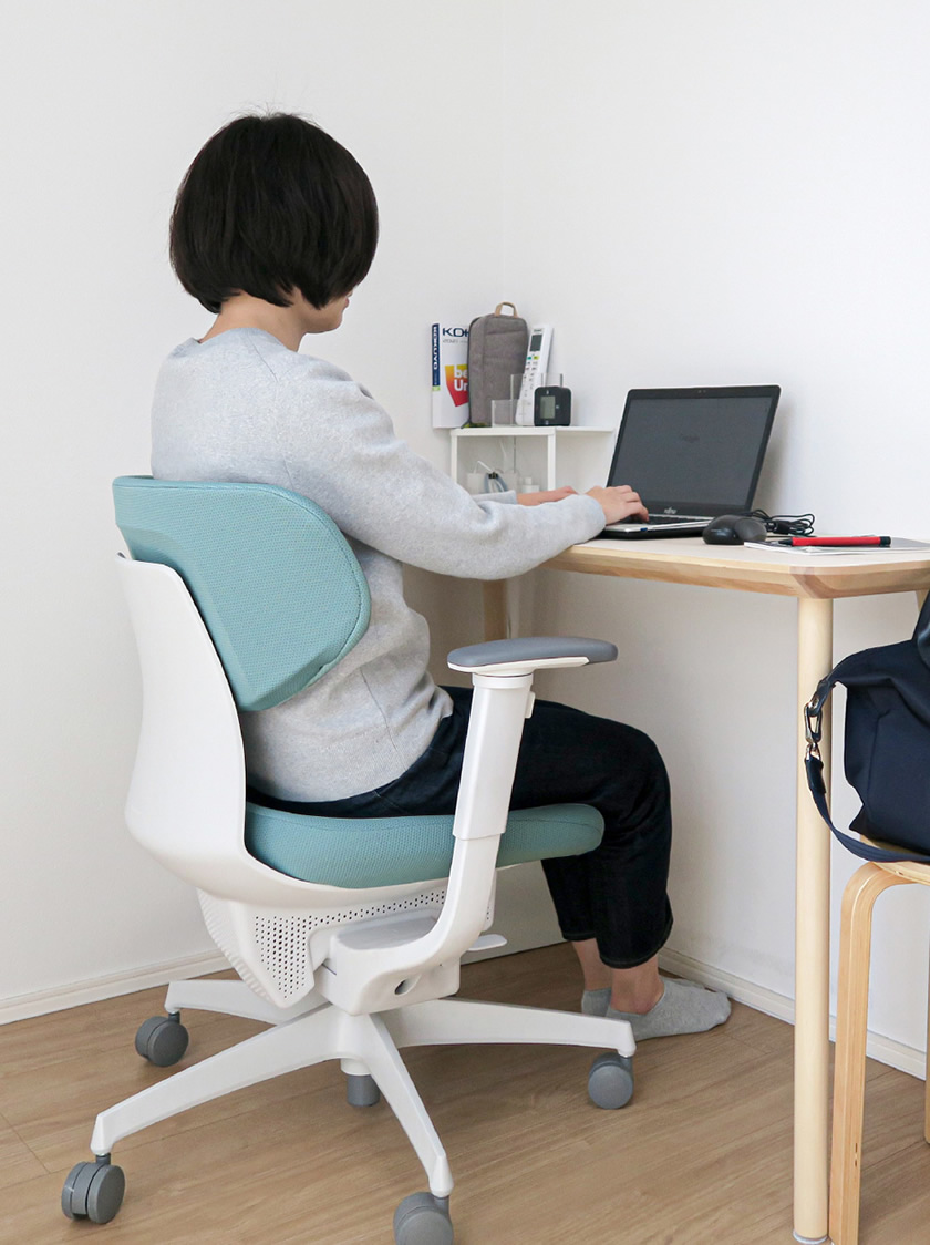 在宅ワークの頻度が高いと、健康的に働くために快適なチェアーが必要不可欠だと感じます。パソコンに向き合う時間が多い方や企画業務など考え事をすることが多い方、書斎や専用のワークスペースがある方におすすめしたいです。同じ姿勢が続かないので、長時間座っていてもラクに働けます。また、キャスター付き・回転チェアーは、小さな子どものいる部屋では注意が必要です。座面の動きが特徴的なので、ぜひ『ing』に座ってみて良さを感じて頂きたいです。