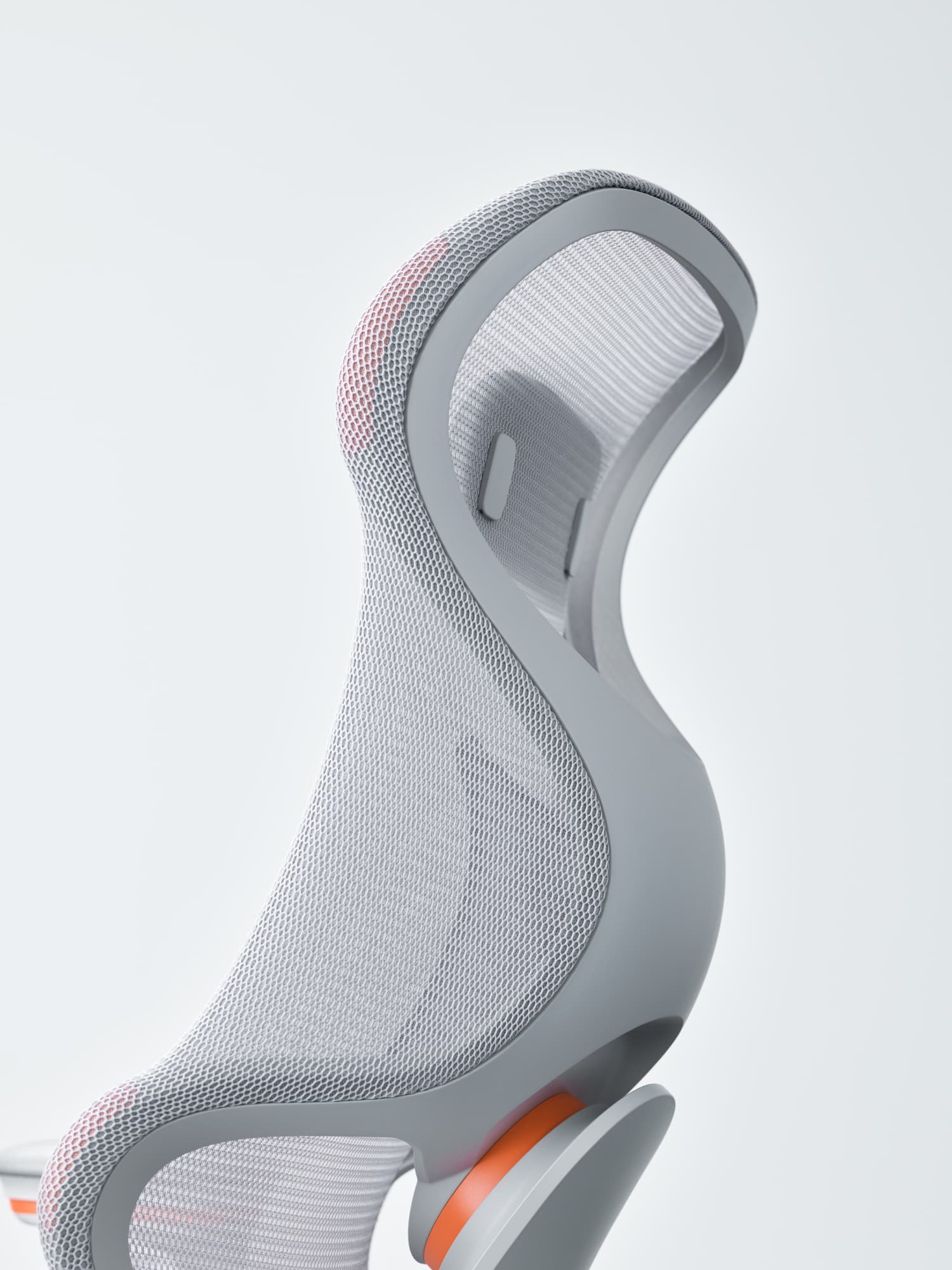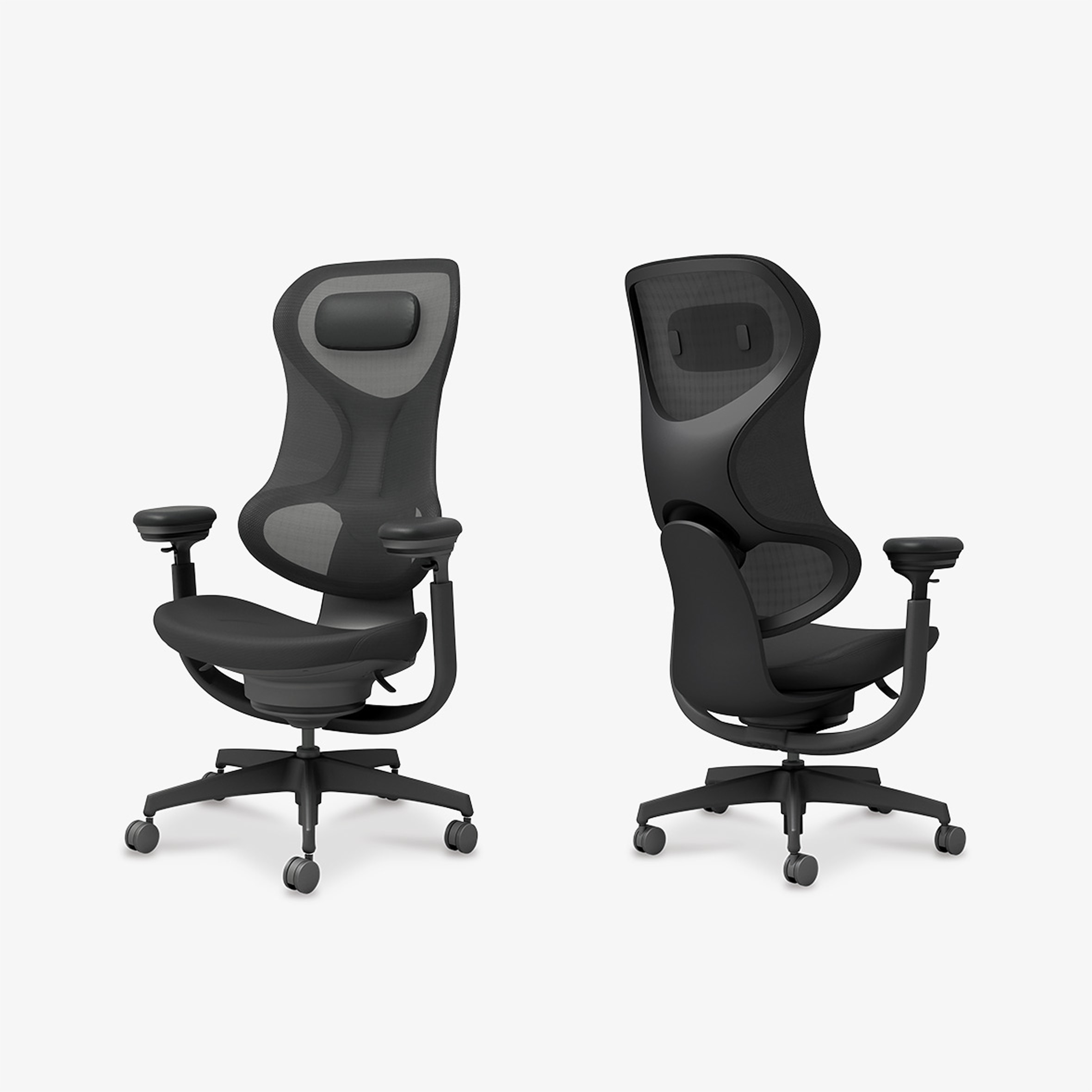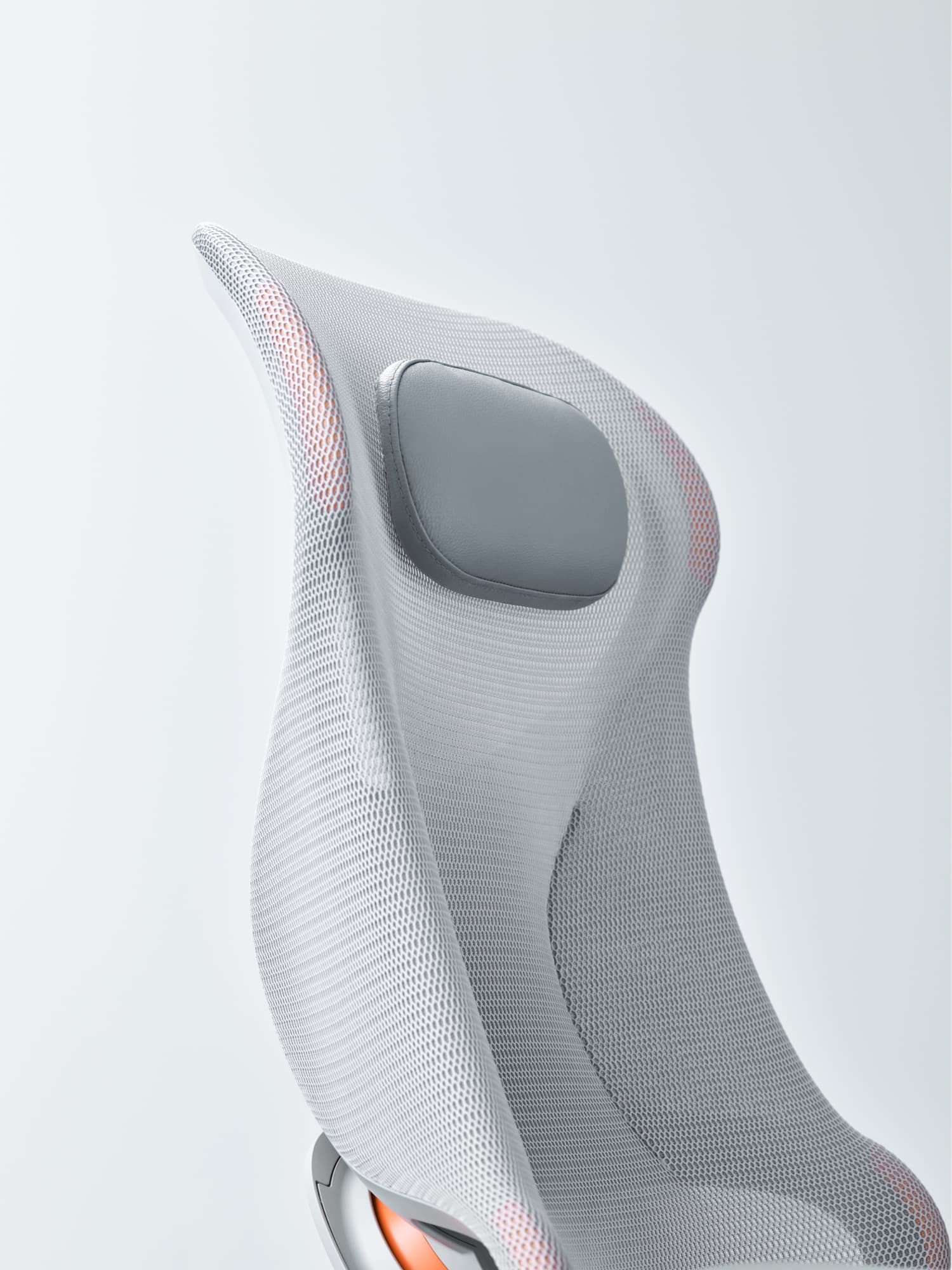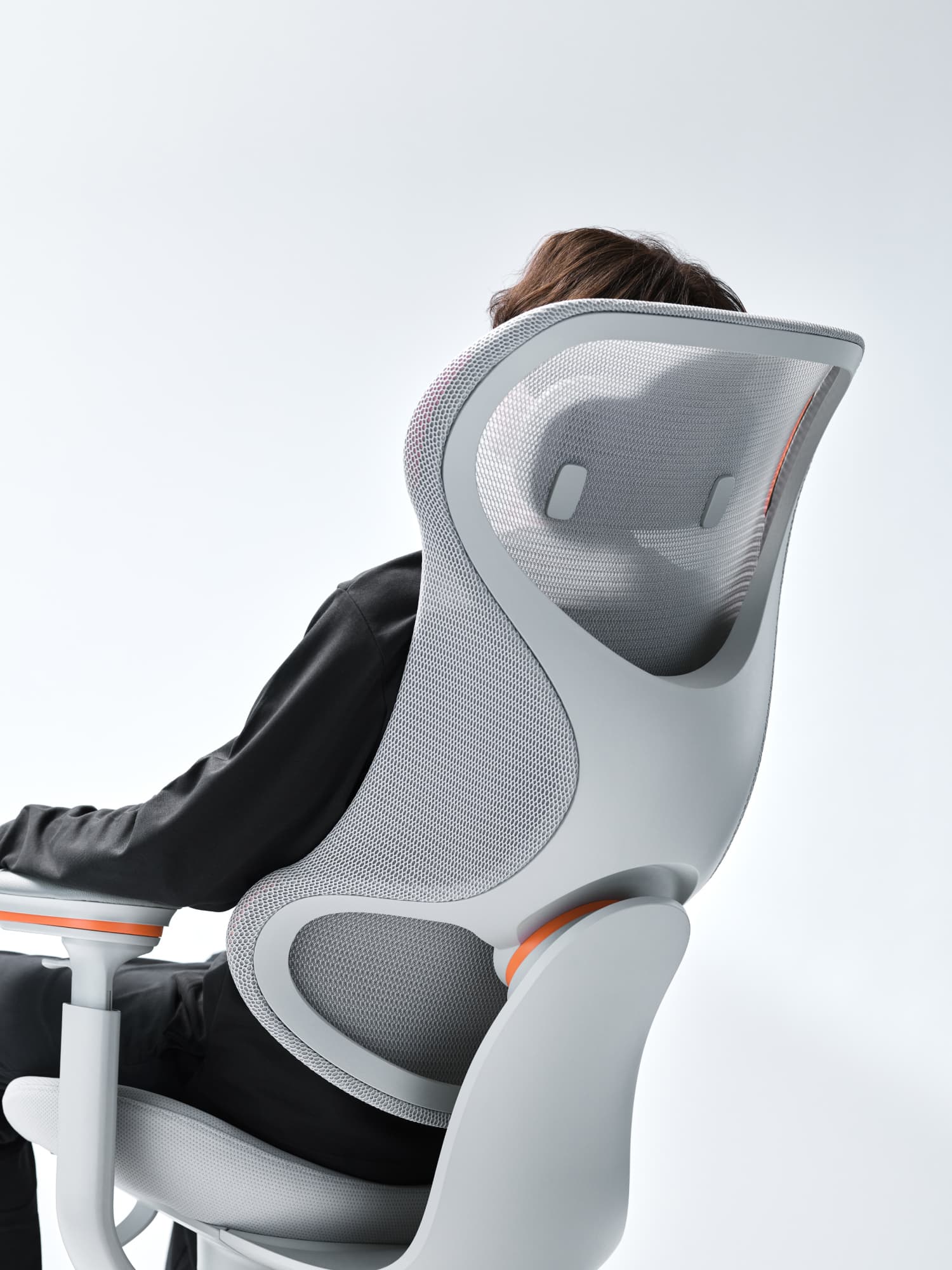 左右のフレームをなくした背もたれが腕の抜けを良くし、自由度を高めて背中に柔らかくフィットします。また、フレームに囲まれた背もたれ下部は左右からしっかりと腰をサポート。この組合せがランバーサポートなどの調節をなくしながらも体格や体型の個人差にも対応します。また、メッシュの上にセットされたヘッドレストは、柔らかさと底付き感のなさを両立した極上のリラックス感を提供します。