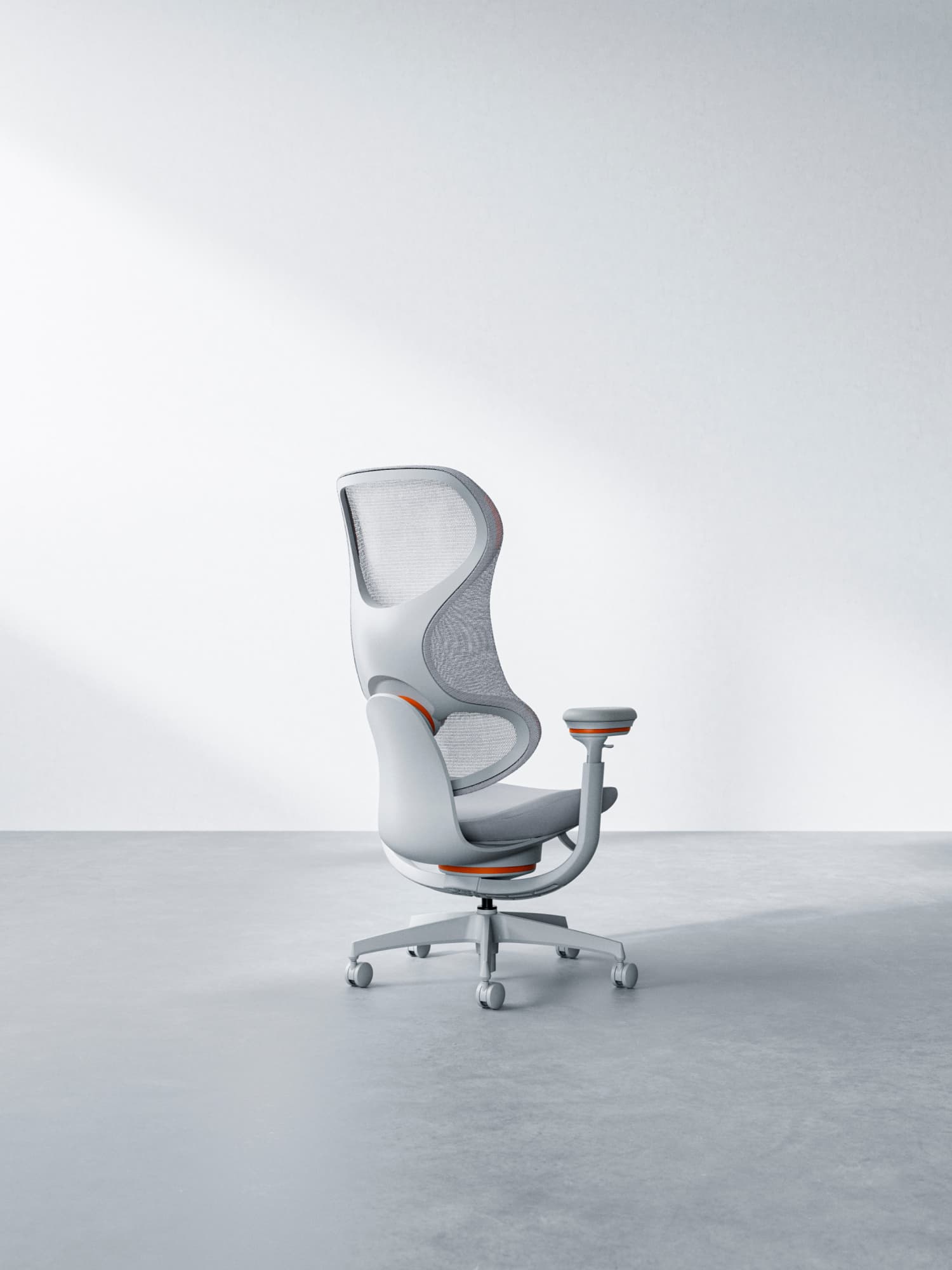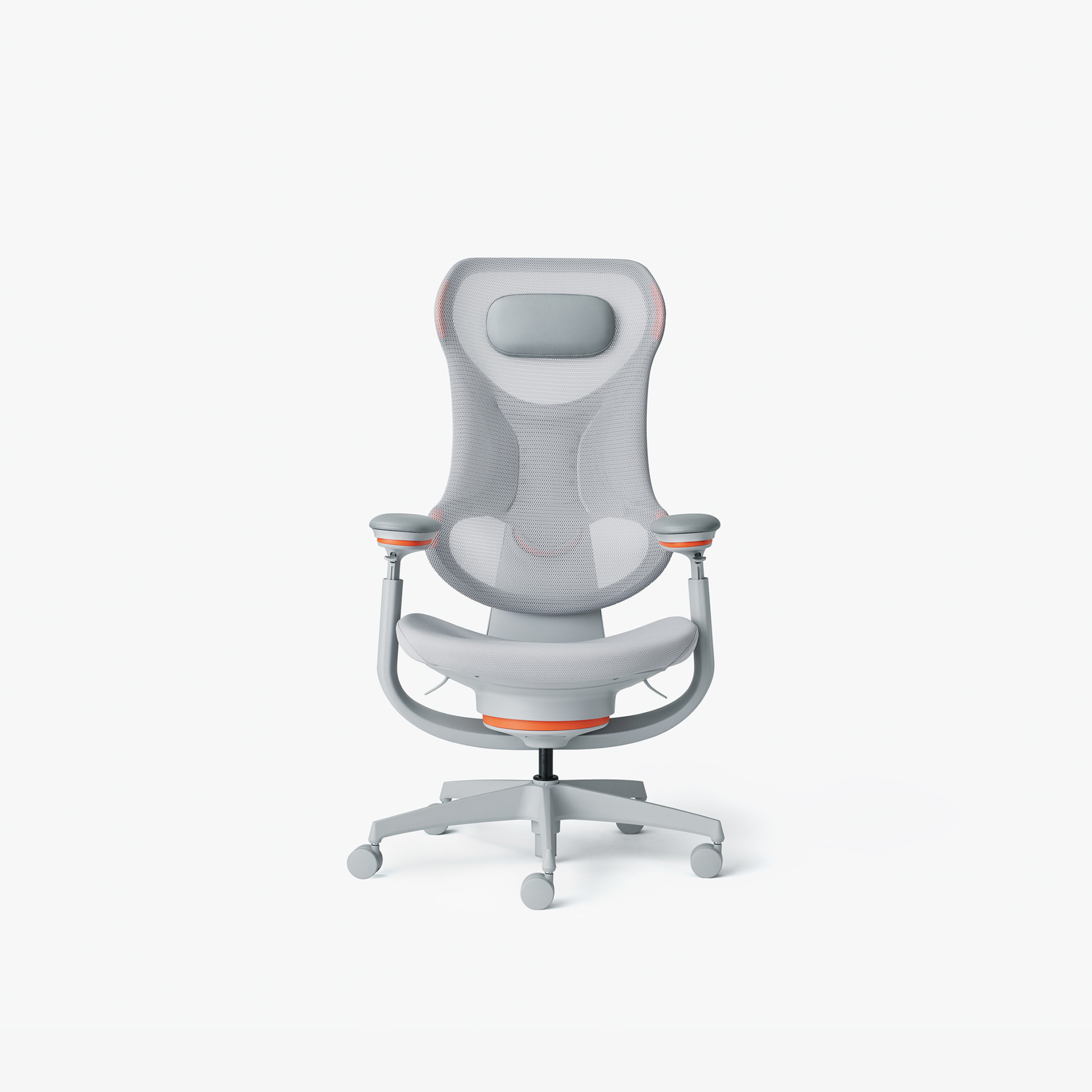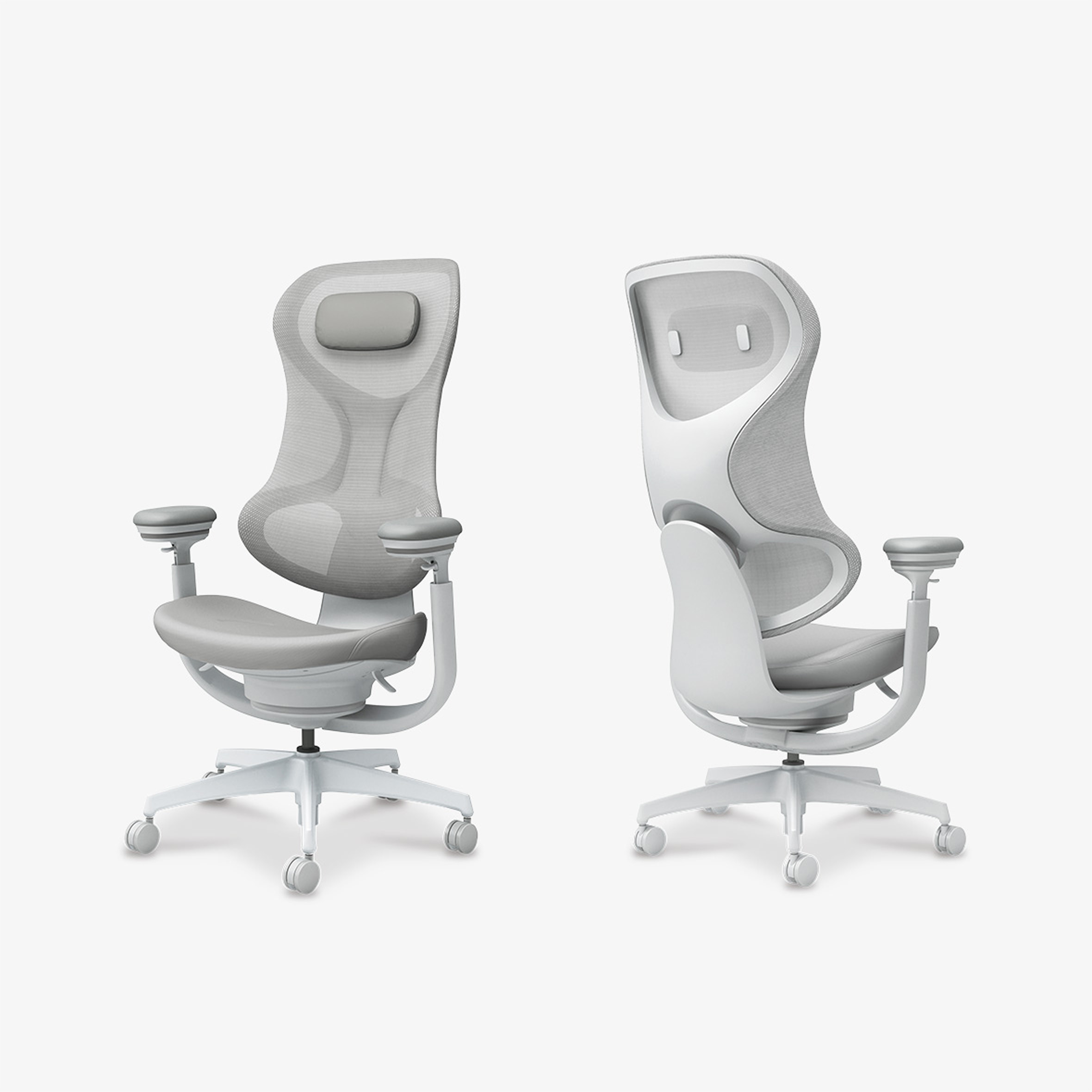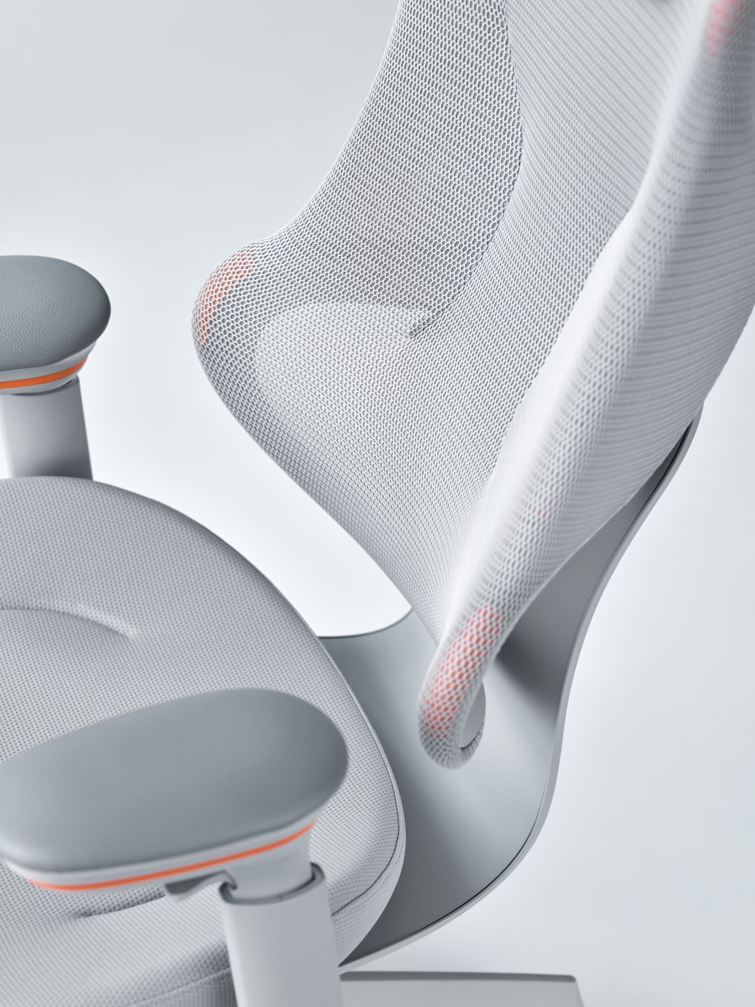 左右のフレームをなくした背もたれが腕の抜けを良くし、自由度を高めて背中に柔らかくフィットします。また、フレームに囲まれた背もたれ下部は左右からしっかりと腰をサポート。この組合せがランバーサポートなどの調節をなくしながらも体格や体型の個人差にも対応します。また、メッシュの上にセットされたヘッドレストは、柔らかさと底付き感のなさを両立した極上のリラックス感を提供します。