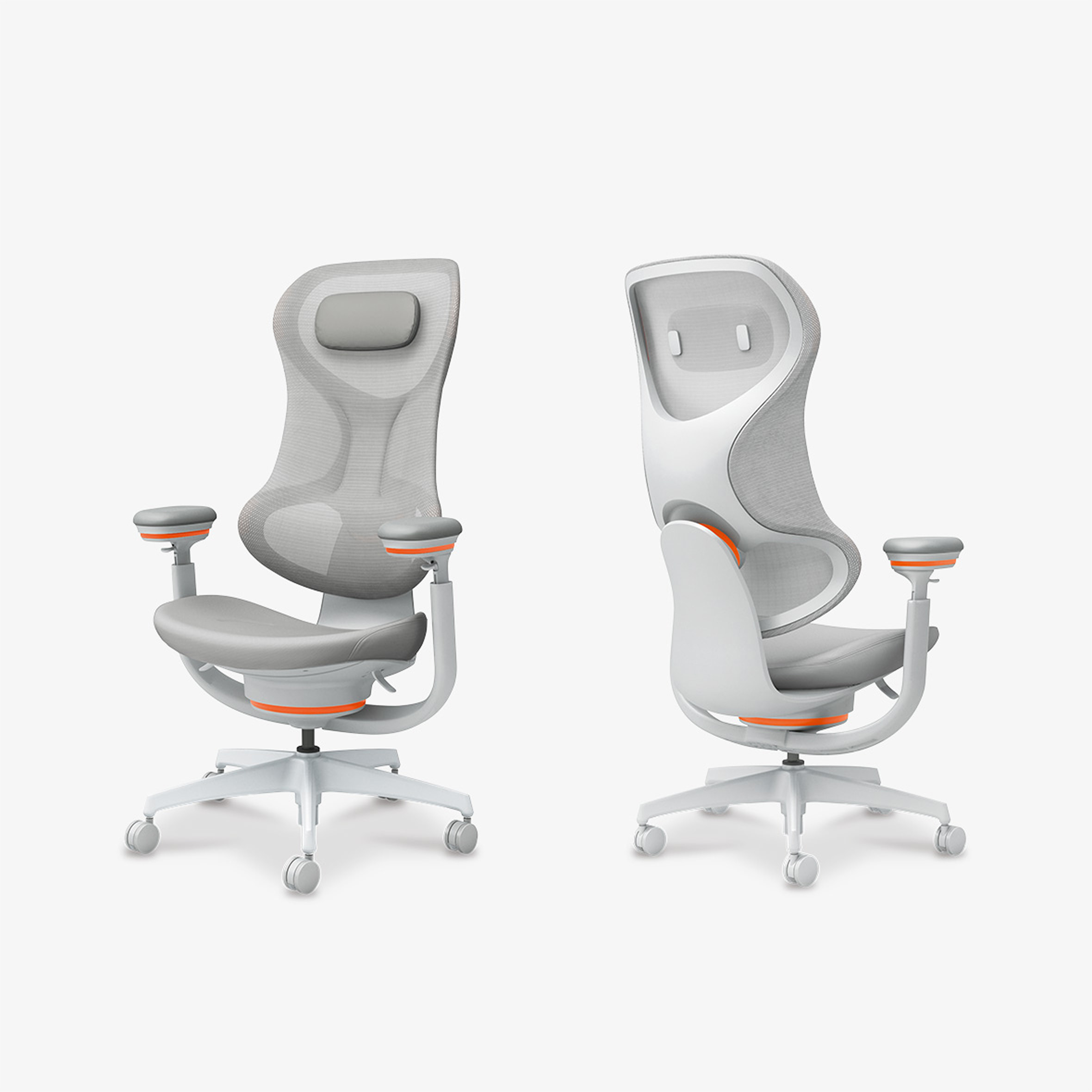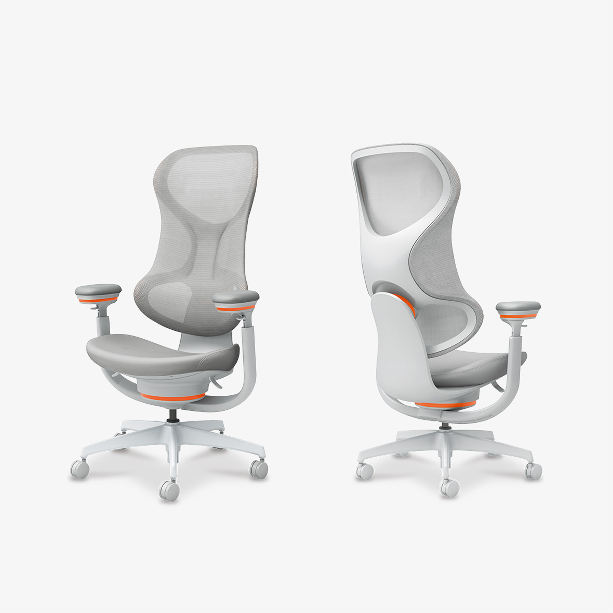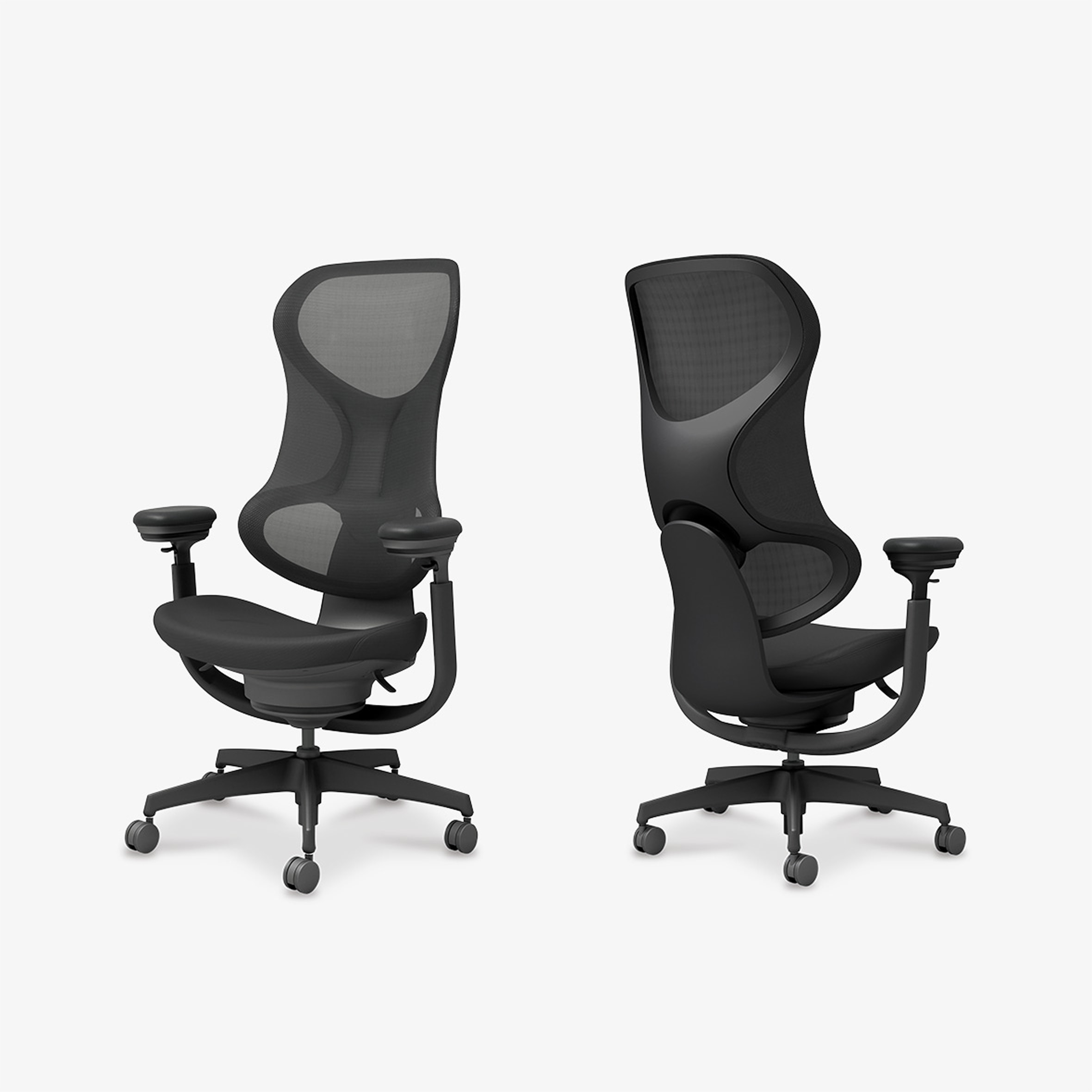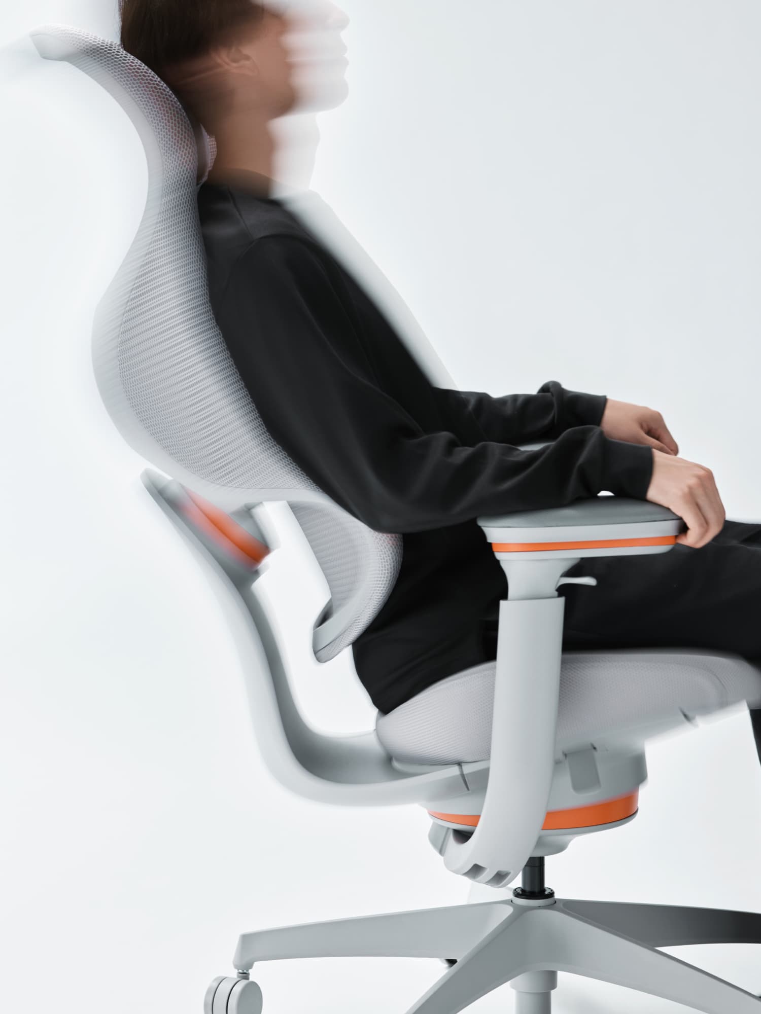 座面下、背もたれ、肘掛け部の3カ所に搭載し、身体の動きに合わせて柔軟に可動するトリプルグライディングと、従来のオフィスチェアーによく見られる背もたれ左右のフレーム構造を使用せず、立体的な面形状をかなえた3Dハンモックメッシュ。これらを組み合わせることにより、さまざまな体格・姿勢に自然とフィットします。