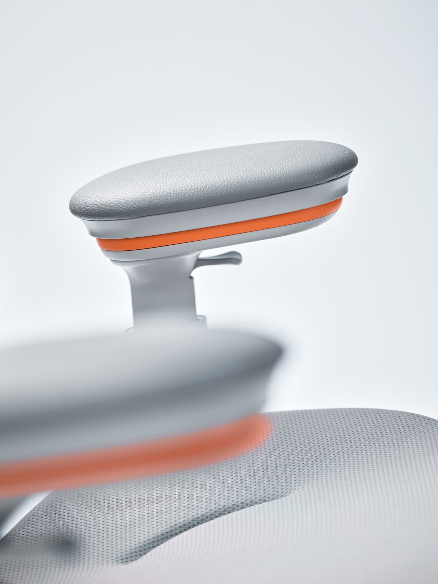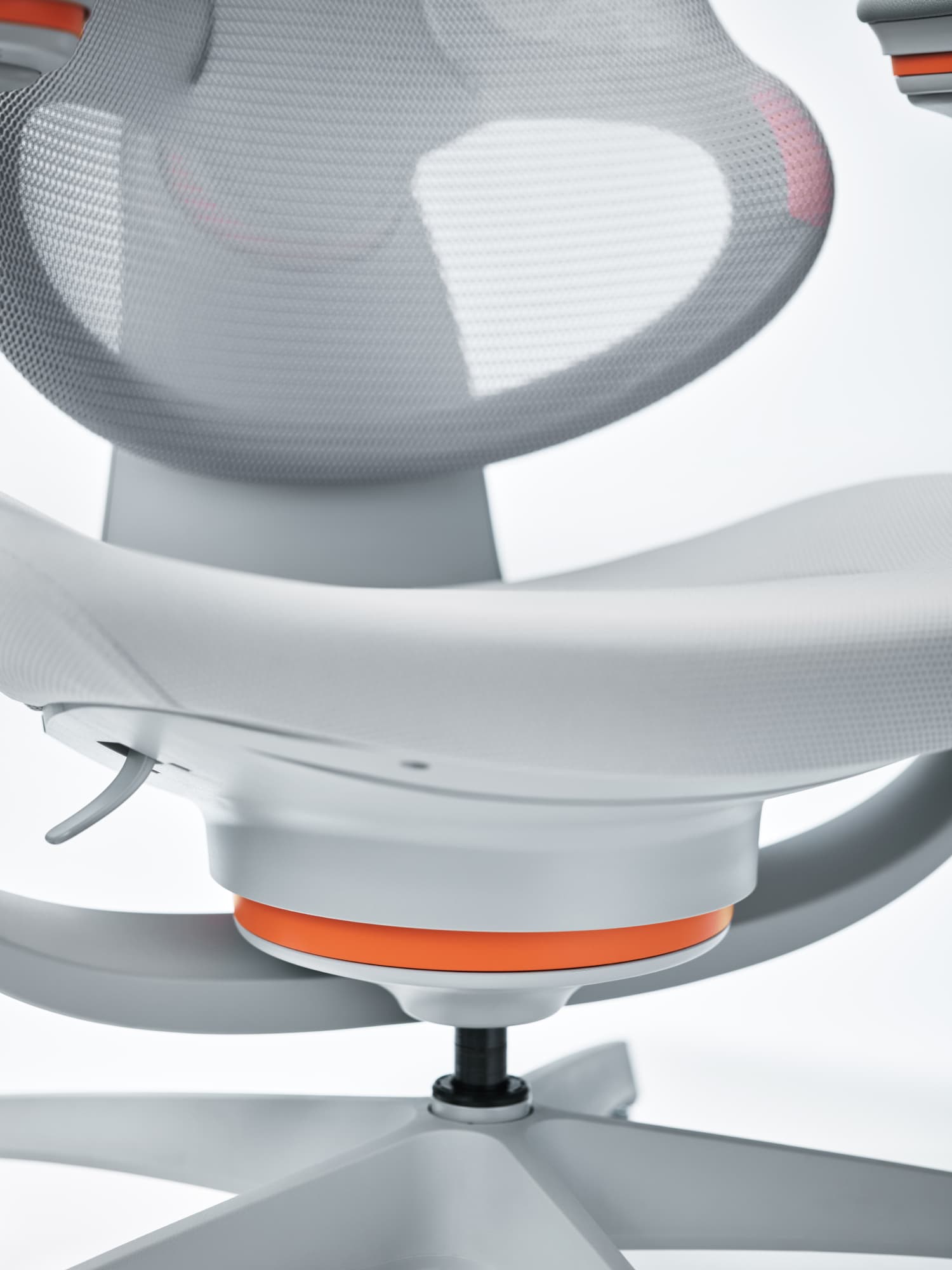 座グライディングは、身体を預けて座る後傾姿勢をゆったりと受け止めるとともに、前傾などの大きな姿勢の変化や左右の動きにもストレスなく追随。可動範囲は座下左手側のレバーで2段階にセレクトできます。背グライディングは背中の微細な動きにまでぴったりと寄り添い、肘グライディングは適正なポジションでタイピングする腕をソフトにそっとサポート。バネを使わず、重力を利用して動く3つのグライディングが体圧を流動的に分散させます。