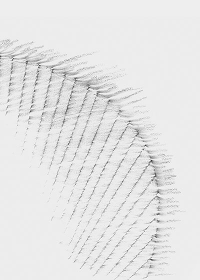 竹製のうちわを手でなぞる。回遊式庭園の池端を目でたどる。禅語「大河の流れに流されるもよし、逆らうもよし」に学ぶならば、人が美しい線を作為的に描こうと試みる必要はありません。素材は、本来的に「なるべき形」をその身のうちに宿しています。人がするべきことは、ただ素直に素材に敬意を払い、「もののあわれ」による直観から顕現する曲線をただ写しとることだけです。その行為からのみ、生まれるかたちがこの世界にはあります。[Fig 2]