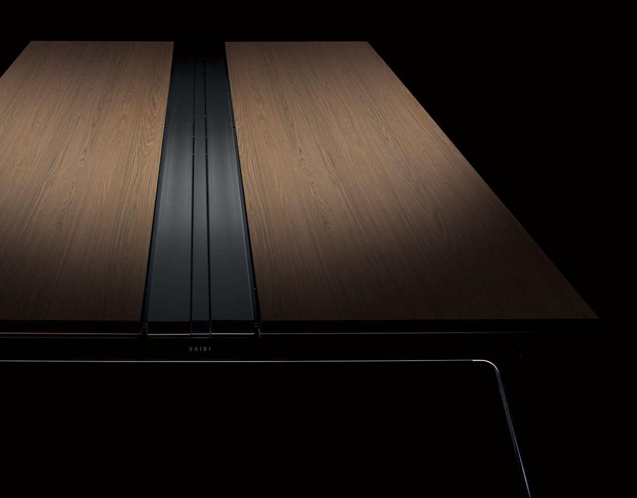 空間に温もりを吹きこむ、美しい木目が映える天板。