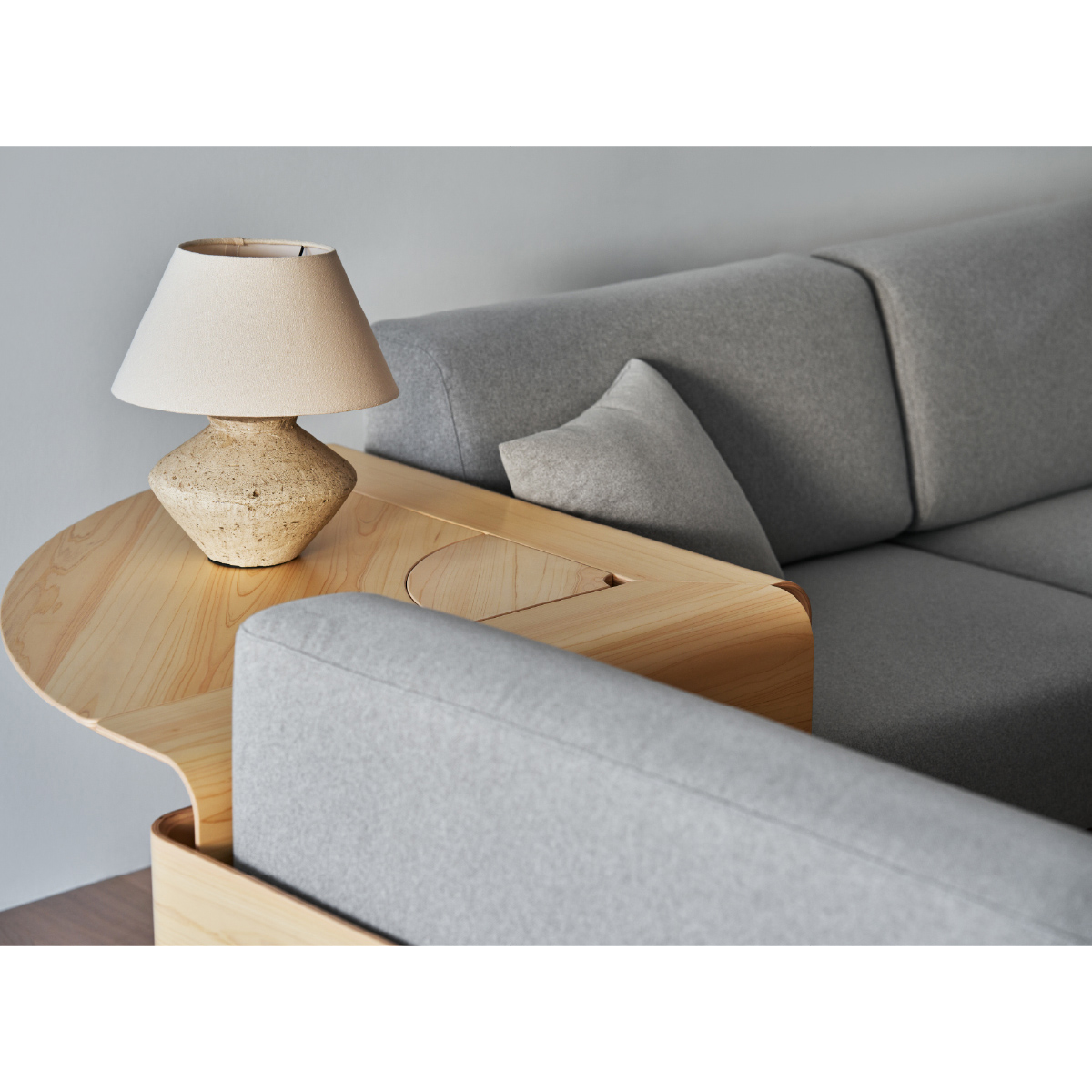 一方、美しい曲線でソファー同士をつなぐコーナーテーブルには、天板に2口のコンセントを標準で搭載しています。