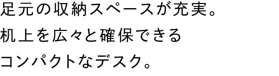 デスクの足元スペースを収納として有効活用することで、手狭になりがちな机上の整理をサポート。デスクの中に収納機能を凝縮することで、コンパクトながらシャープで軽快なオフィスを構築できます。