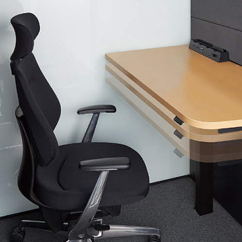 ワイド 電動昇降デスクタイプ天板が電動昇降し、姿勢や目的に合わせた高さ調整が可能。