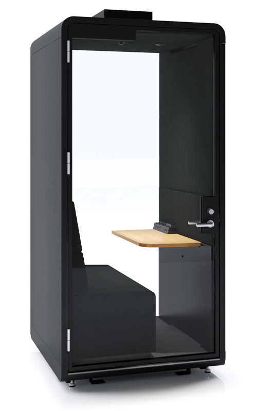 1on1は 、ガラスパーティションに電動ロールスクリーンを内蔵 、降ろすことで1人用としても使用可能です。
