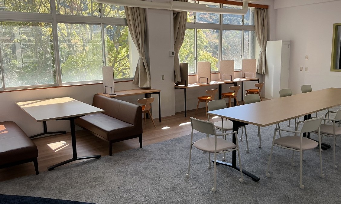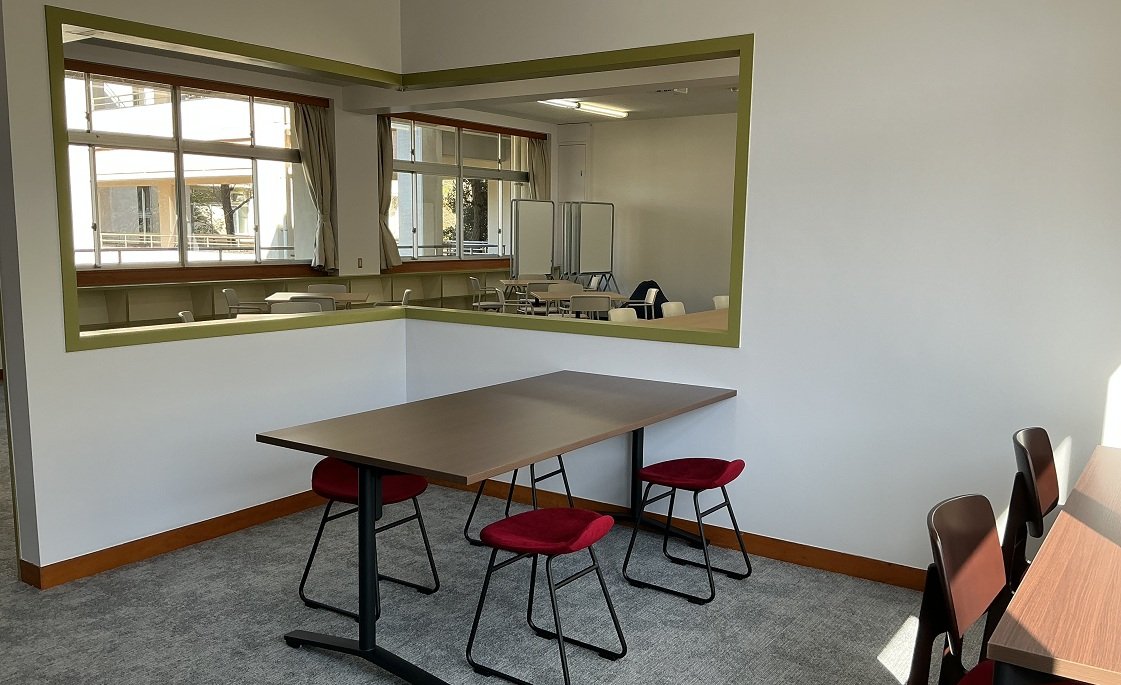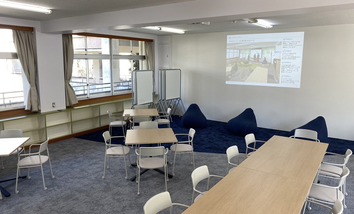 静かで入りにくい雰囲気があり、生徒同士の交流・発信の場として機能していない点やグループワークに適した設備が整っていないことから、図書室の位置づけを再構築するため誰もが自由に集い、学び合い、新しい価値を創造できるような空間づくりを目指してリニューアルしました。