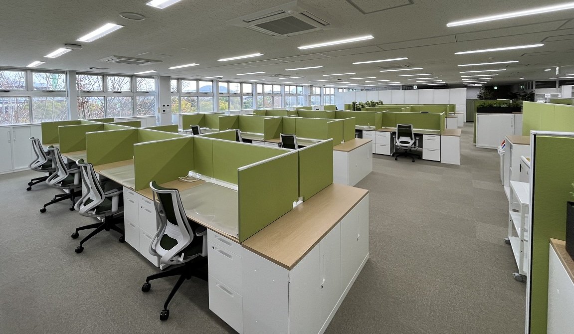 点在している部門毎の執務エリアの集約と増員に伴い、工場敷地内の別建屋に移転しました。