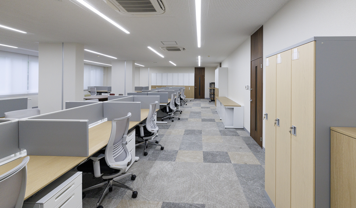 事務所の老朽化と、従業員の増加に伴う席数確保・人材確保のため、執務環境の向上を狙いオフィスをリニューアルしました。