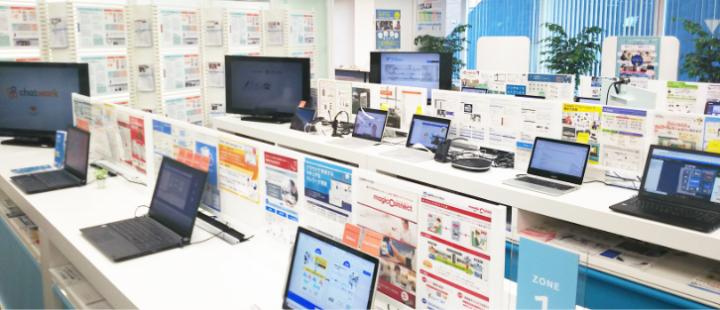 センターを訪れる利用者は、テレワークに必要な機器やツール、サービスを体験しながら比較・検討できる。