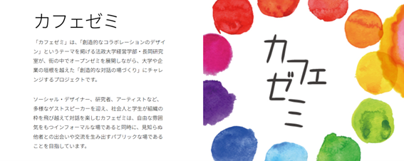 また、長岡研究室では「創造的なコラボレーションのデザイン」をテーマに活動し、サードプレイス(第三の場所)となる対話の場づくりなどに取り組んでいます。学生には慣れ親しんだコミュニティを飛び出す越境体験を課しており、noteやポッドキャストなどでの日々の発信に加えて、年に4回、誰でも参加できる「カフェゼミ 」という実験的なオープン・ゼミも開いています。