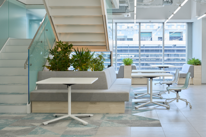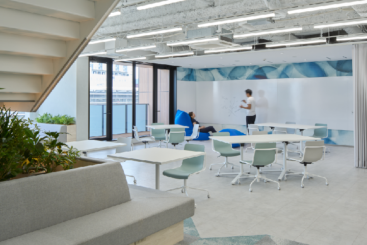 伊賀:生産性の向上、社員同士の交流やコミュニケーションの活性化に向け、集中して仕事がしたいときやチームでコミュニケーションをとりながら仕事がしたいときなど、目的やシーンに応じて働く場所が選べるオフィスを意識しました。実質、グループアドレスのような部署もありますが、フリーアドレスについては概ね好評です。