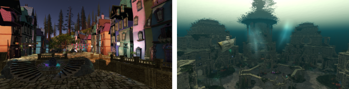 ファンタジックな中世の街並み 海底遺跡の仮想世界