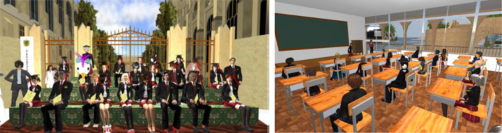 私自身、空港やショッピングなど英語を使うシーンをメタバース上に再現した、英会話のトレーニング教材を開発・運用したことがあります。また、うちのゼミ生がメタバース上に開校した学校には、400人ほど生徒(実年齢的には大人)が集まりました。その学校では、英会話、写真撮影、映像制作など自分の得意なことを教える人が授業をしたり、生徒主体でクラブ活動をやったりと、楽しそうでしたね。興味深いのは、授業の出席率が高かったこと。一般的に、一人で受講するeラーニングは継続率が低いのですが、「学校に来てみんなで受ける」というシチュエーションがほどよい縛りになるのでしょう。あくまでも「学校ごっこ」ではあるのですが、みんなで同じ制服を着て、一緒に授業を受けている...という連帯感も、プラスに働いたのだと思います。