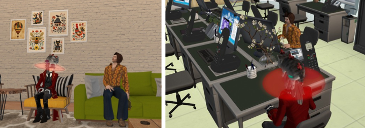 現実社会のかしこまった場ではできない、緩やかなコミュニケーションができるのがメタバースの良さだと思います。まず、アバターで入ることで、見た目や服装など「自分ではない自分」「なりたい自分」に自由自在になることができます。なかには現実世界とは別の性別にしている人もいますし、私自身もイケメンで背の高いかっこいいアバターを使っています(笑)。つまり、「私はこういう人です」という自分の主張や立場など個性を表現しやすく、非言語コミュニケーションも可能になるのです。 また、メタバース上でなら、いつでもどこでも、物理的に離れていて容易には会えない人とも会うことができます。国土が広いアメリカでは、老後に友だちと会うためにセカンドライフをやっている人もいますよ。