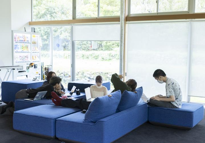 学生たちの生活・活動の場は、大きく2つ。1つは、主に生活を送る「HOME」で、寮のほか食堂や図書館などもある。もう1つは、主に学習やプロジェクト活動の場となる「OFFICE」。講演会やイベントも行える大講義室や学生が自由に過ごせるホワイエなど、空間設計にも工夫がされている。