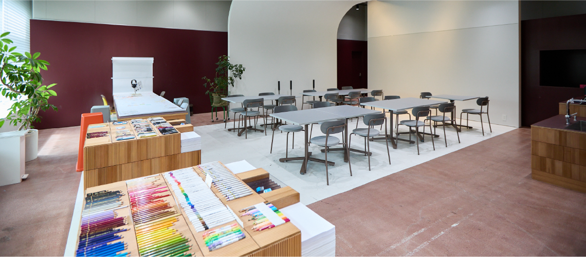 単純な理由ではありますが、コクヨさんのご提案を伺ったときに、すごくワクワクしたので、お願いしたいと思いました。最初のご提案の時点で、現在のo-i STUDIOにあるお絵描きテーブルや、実際の鉛筆を使用して作られたステーショナリースタンドなどのアイデアが含まれており、設計とデザインに感銘を受けました。私たちがこの場所に込めた想いについて、ご理解いただけていると感じました。